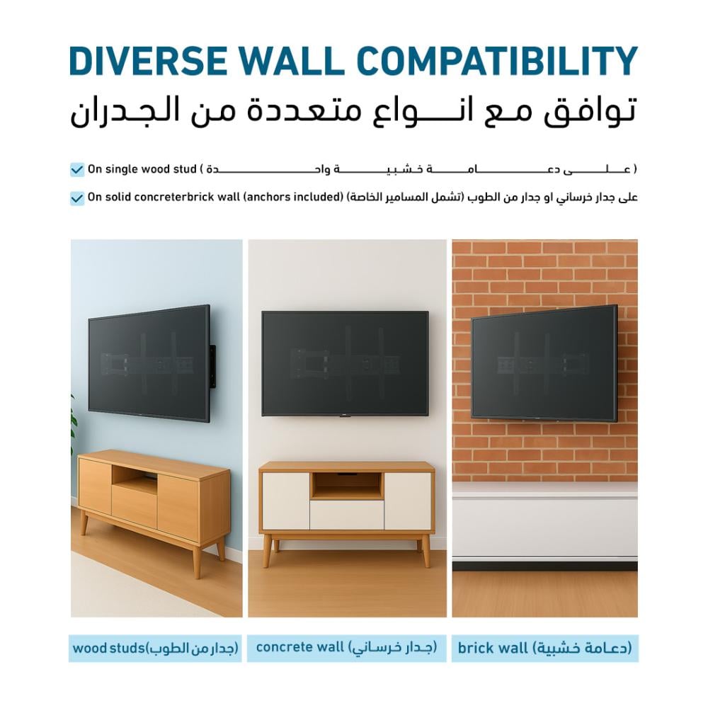 - مثالي لشاشات LCD، LED، والبلازما بمقاسات 26 إلى 55 بوصة