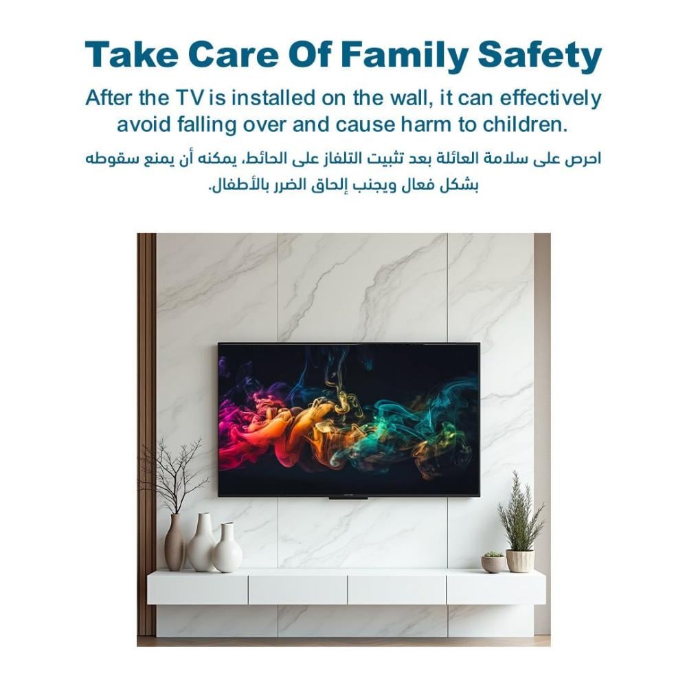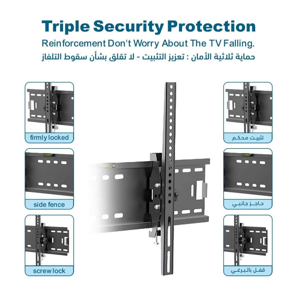 - تحمل ثقيل: يتحمل حتى 60 كجم، مما يجعله مناسبًا للشاشات الكبيرة.