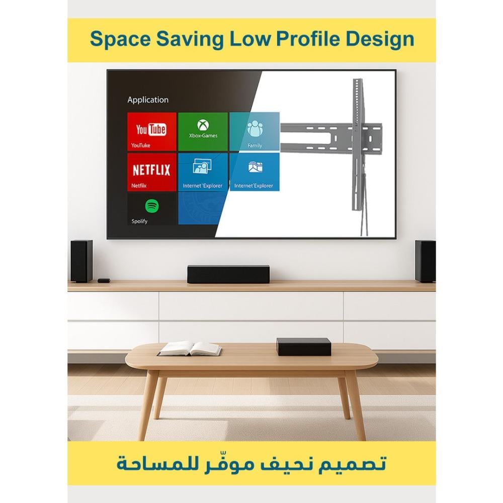 - تصميم مدمج وأنيق: يضمن أن تكون شاشتك قريبة من الحائط بمسافة 29 مم فقط، لتحافظ على ديكور الغرفة مع تقديم دعم ثابت.