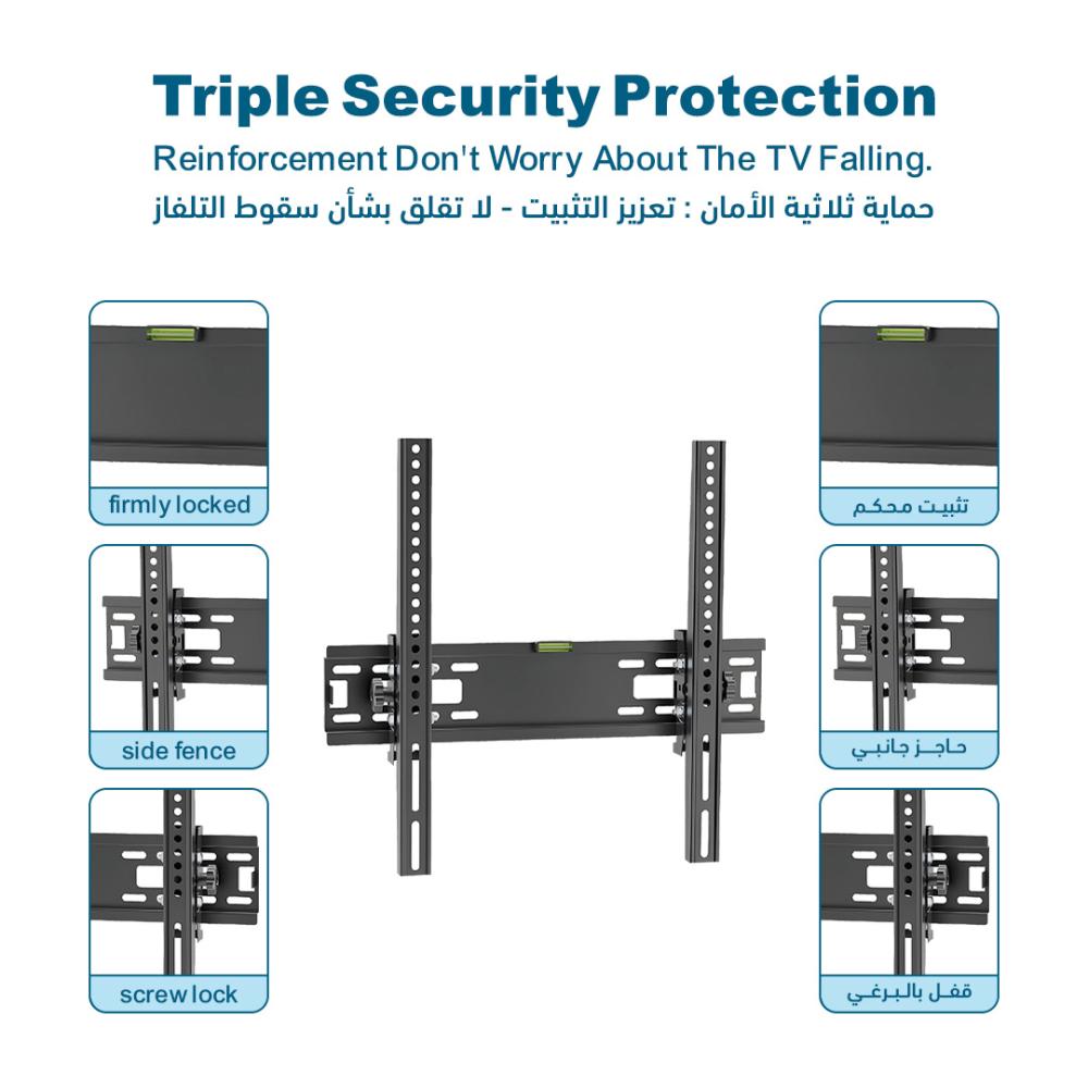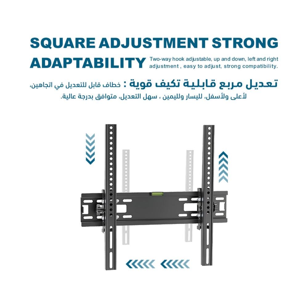 إذا كنت تبحث عن حامل جداري متين مع إمكانية ضبط زاوية الشاشة لتناسب وضع المشاهدة الأمثل، فإن حامل التلفاز FB-302 هو خيارك الأمثل. يتميز بإمكانية الإمالة حتى ±15° مما يسمح لك بضبط الشاشة بسهولة للحصول على أفضل زاوية مشاهدة.